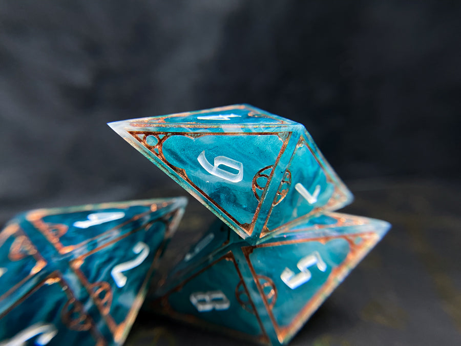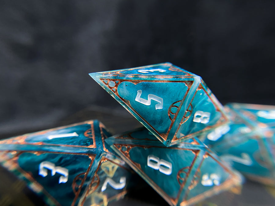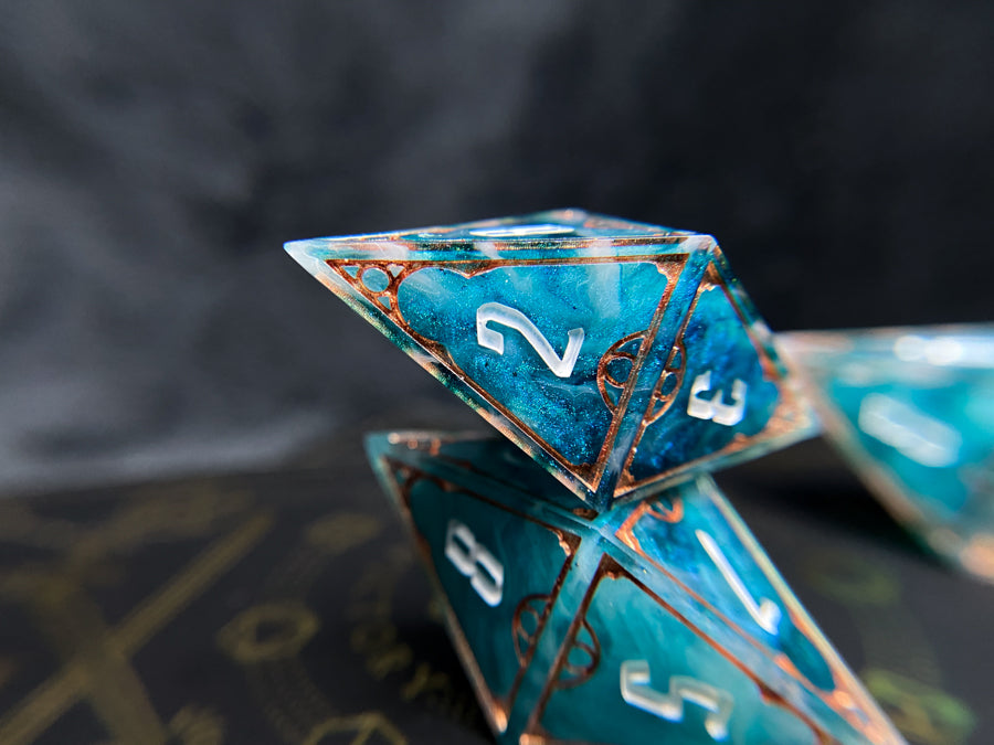 Our dice are made by two people, who between them have the completely normal total of four hands. Those four hands do every step of the process from making molds to not plucking the cat hairs off our finished products. Our dice are not flawless, and may have small mold or sanding marks. They will however be filled with an absurd amount of our creativity and love.